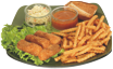 Servi avec Frites, Sauce, Salade de Chou et Pain