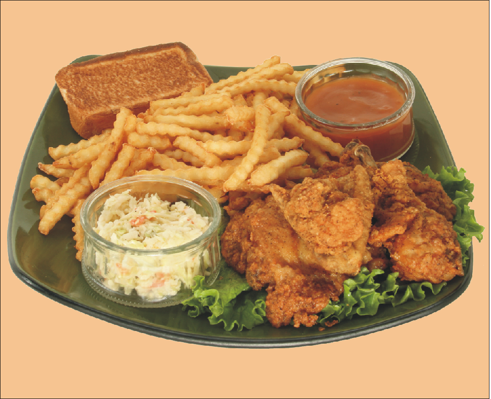 Servi avec Frites, Sauce, Salade de Chou et Pain